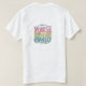 En fet t-shirt-design med texten "Mobilisera den mäktiga" i en övertoning av multifärgaden, med olika vibrerande skuggning för varje ord.