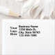 Du kan ersätta visningen med företagets logotyp. Fyra linjer av den svarta visningen står bredvid bilden. Du kan redigera texten för att visa din affärs-returadress och ditt mobila nummer. Etiketterna är vita. Texten är svart och fet.