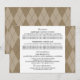 Klassiskt och elegant Argyle bröllopsinformationskort med en enkel ljusbrun diamant argyle mönsterbakgrund. Lätt att anpassa med dina bröllopsdetaljer. För fler anpassningsalternativ, klicka på knappen Anpassa.