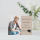 On front: Add your own vertical size photo of the graduate. A trendy mocha, beige colored background, black text. Templates for a name and date. The name is written with a modern hand lettered style script. With a cap, tassel topper.
