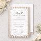 Elegant wedding RSVP card featuring classic mocha brown French stripes and a delicate scalloped lace frame for a refined vintage look. Designed in a soft neutral ivory and mocha palette, this RSVP card offers a clean, easy-to-complete layout while coordinating beautifully with neutral wedding stationery suites, farmhouse elegant celebrations, and timeless romantic wedding themes. A polished and cohesive addition to your wedding invitation set.