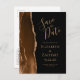 Den här eleganten är modern för att spara datumet på vykortet med en mocha brun vattenfärgsagat gräns som trimmas med faux guld glitter. Anpassa enkelt guld-färgad-texten mot svart bakgrund. På baksidan upprepas informationen, tillsammans med en returadress för anpassadet.