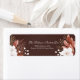 Add a touch of refined organic beauty to your correspondence with this sophisticated botanical composition. The design features a deep mocha brown background with a rich, tactile grain that beautifully offsets the vibrant arrangements on either side. Lush white flower blooms take center stage, surrounded by delicate terracotta and dusty rose foliage, including an elegant gold line-art leaf that adds a hint of shimmer and high-end detail. This return address label serves as the perfect finishing touch for wedding stationery, seasonal holiday cards, or refined personal correspondence. These motifs ensure your envelopes stand out with a polished, cohesive look that captures a modern rustic essence from the moment they are handled.