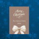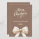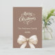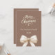 En mocha, muterad brun bakgrund, krämtext och färgad. God jul är skrivet med ett elegant handskript i stil. Anpassa och lägg till din familj namn. Tillbaka: lägg till ditt meddelande och din namn.