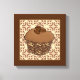 Kupaka med mocha som frostats med chokladtäckta kaffebönor, i en dekorativ chokladbrun och bruna burkburk, på en lätt choklad och beige snöre-belagd bakgrund poster