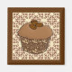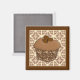 Magnet som en Cupkaka med mocha som frostas med chokladtäckta kaffebönor, i en dekorativ, chokladbrun och bruna cupkakor-omslag, på en ljuschoklad och beige snöre-mönstrad bakgrund