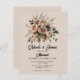 Den här inbjudan från elegant bröllop har fantastiska blommigtar på bakgrunden med klassisk typografi. Denna utformning är perfektens val för en rustik men elegant sen sommaren eller hösten bröllop.