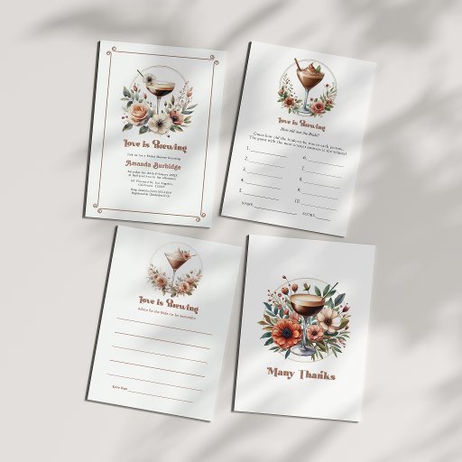 Ge roliga tillställningen kul och skratt med detta bröllopsdusch-spelkort ”Kärlek bryggs”. Designat i en chic mocha-mousse-färgpalett med elegant cocktail-inspirerad konst, inbjuder detta interaktiva ”Hur gammal var bruden?”-spel gästerna att gissa brudens ålder i minnesvärda foton. Perfekt för kaffetematiska, moderna eller neutrala bröllopsduschar, detta stilrena spelkort tillför underhållning samtidigt som det koordinerar vackert med din evenemangsskrivbordsuppsättning.