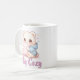 Mochi Cuddle Bear coffee mug featuring a cute kawaii character with big glossy eyes hugging a pillow. Perfect cozy gift for kawaii and bear lovers.