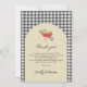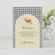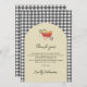 This modern baby shower ´thank you´ card with a country and rustic theme, ´Locally Grown´ (Farmer's Market) features an elegant cream arch on the gray gingham background. The custom text is written in a mix of modern simple typography and handwritten script. It is decorated by a lovely hand-painted watercolor illustration of a red wheelbarrow full of fresh farm veggies. The reverse features the same blue plaid pattern and a custom photo of a baby, if you would like to make it a thank-you or birth announcement card.