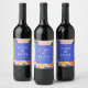Mod Blue Artsy Abstrakt Botanical Bröllop Anpassni Vinflaska Etikett
