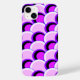 iphone case med min abstrakta utformning av överlappande cirklar av lila, rosa och svart.