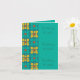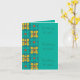 Modet Flower tile mönster Teal & Gult, Vardagshälsningskort - uppdaterad version av 70-talets Flower-strömdesign som passar perfekt in i en fyrkantig ruta. # brickor har ställts in i en spalt nedåt på den lämnat sidan av kortets framsida och hälsning "Thinking of you" har skrivits på högernas sida. Du kan ändra en eller alla hälsning på framsidan till spelar ingen roll som du vill eller behålla den som den är. Det är helt upp till dig. På insidan finns två av de dekorativa fyrkanterna som har högerna i mitten. Ett unikt sätt att dekorera insidan. JA!