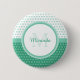 Mod Grönt och vit Polka dots monogram med Namn Knapp