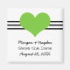 Enkel och charmerande Mod Heart Spara datum magneter med ett trefaldigt band av rand och ett älskat hjärta i chartreuse grönt. Detta söta men minimalistiska spara datum magneter är perfekt för att tillkännage ett modernt och elegant bröllop. Enkel att anpassa, lägg bara till information om bröllop. Klicka på Anpassa om du vill söka efter ytterligare anpassningsalternativ.