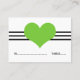Enkel och charmig Mod Heart Bröllop Place Card med tre band av rand och ett älskat hjärta i chartreuse grönt. Detta söta men minimalistiska ledsagarkort är perfekt för ett modernt och elegant bröllop. Det finns utrymme för skrivan i namn och i bordsnummer där gästerna kommer att sitta. Klicka på Anpassa om du vill söka efter ytterligare anpassningsalternativ.