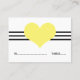 Ett enkelt och charmerande Mod Heart Bröllop Place-kort med tre band av rand och ett älskat hjärta i gult. Detta söta men minimalistiska ledsagarkort är perfekt för ett modernt och elegant bröllop. Det finns utrymme för skrivan i namn och i bordsnummer där gästerna kommer att sitta. Klicka på Anpassa om du vill söka efter ytterligare anpassningsalternativ.
