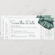 Giant tropiska Monstera-löv är ett perfekt tema för en modern minimalistisk strand eller bröllop, och vi har lagt till lite av en resepurt för att meddela bröllop-datumet för ert destinationsbröllop - ett boardingpass från flygplan biljett stil. Ton av rum på baksidan för reseinformation, eller ta bort platshållartexten och spela med den stora löv-grafiken på baksidan. Alla typsnitt och färg i bakgrunden är redigerbara för att matcha det tropiska bröllop stil.