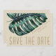 Mod Monstera Löv Grönt och Tan Bröllop Spara Datumet
