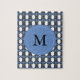 Mod Retro Monogram Blue Abstrakt Scarab Mönster Pussel