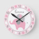Mod Rosa Elephant Personlig Nursery Wall Clock Rund Klocka