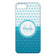 Mod Turkos Blue Polka dots Monogram med Namn Case-Mate iPhone Skal