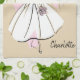 Ett halvsekelsmönster i stil med en återpekande med linje teckning av en brud och brud i rosa och vitt på neutralt färg byter bakgrund. Inspirerad av illustrationer av klädsel mönster och mode från 1950- och 1960-talen. Ett anpassade som du kan anpassa med egen text, bilder och egna idéer. En originalbild för digital konst skapat av Jess Perry på QuirkyChic Retro.