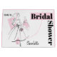 En stil-design i mitten av århundradet med en återpekande med en linje teckning av en brud och en brud i rosa och vit på en vit bakgrund. Inspirerad av illustrationer av klädsel mönster och mode från 1950- och 1960-talen. Ett anpassade som du kan anpassa med egen text, bilder och egna idéer. En originalbild för digital konst skapat av Jess Perry vid QuirkyChic Retro