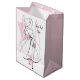 En stil-design i mitten av århundradet med en återpekande med en linje teckning av en brud och en brud i rosa och vit på en vit bakgrund. Inspirerad av illustrationer av klädsel mönster och mode från 1950- och 1960-talen. Ett anpassade som du kan anpassa med egen text, bilder och egna idéer. En originalbild för digital konst skapat av Jess Perry vid QuirkyChic Retro