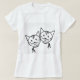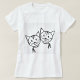 Två katter i svartvitt, en till lämnad och en på högerna, överlappar varandra. Katterna har triangulärt öron, runda ansikte och whisky. De har också en liten, böjd mun och två små runda ögon. Katterna förbinds med en tunn linje som bildar en V-form. Bakgrunden är vit.