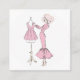 Mode blond flicka i rosa klänning med provdocka av vattenfärgsformgivare mode