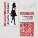 Mode-designerflicka med rödvita affärskort som fångar öga och som har en modernt mönsterflicka i svart med rött, vitt zebra-djur, med utskrift som inte är överst och handväska på vit bakgrund och ett mönster-band. Ett kort för snyggt, elegant, trendig för en designer, konsult, boutique-ägare, en mode eller för mode show och för alla industriföretag i mode fält. Lite inslag från vectorportal.com.