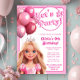 Mode doll födelsedagsfest inbjudan med söt prinsessa doll och rosa ballonger Dockan födelsedagsfest inbjudan fungerar i vilken ålder som helst, lägg bara till din händelseinformation.