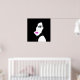 En chic mode-flicka porträtt i svartvitt med rosa läppar och blått ögon, i en vektorkonst stil.