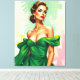 Denna fet illustration av mode illustrerar en grym kvinna, klädd i en elegant som framstår som grönt med guld smycken. Hennes omdömesgilla inställning och förfinade detaljer belyser både styrka och kvinnlighet, skapar denna teckning som en tidlös firande i stil. Perfekt för klädrum, sovrum eller modernt insida tillför biet sofistikering och elegans i mode till alla väggar.
