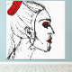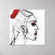 Utformning av en kvinna i stil i mode modellskisser. Svart och vit med röda högdagrar, ursprungligen ritade med pennan på papper.