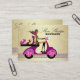 Mode skor och pryder med ädelsten visitkorten med den roliga sparkcykelkvinnan.