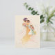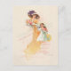 Vacker ung viktoriansk mor i guldkjol och lila mössa på trappan med sin dotter som bär en söt vit klänning målad i pastell akvarellstil. Baksidan har redigerbar text, textfält och valfri blomgrafisk design med anpassad kompletterande bakgrund.