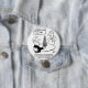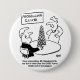 Badge visar att en man vid en klubb med modell har byggt en modell av Eiffel Torn ur korvar. Den brittiska karikatyrtecknaren Nigel Sutherlands surrealistiska tecknad. Modellmärke. Lustigt modellskapargåva.