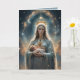 En bild (skapad med hjälp av artificiell intelligens-programvara) av den Saliga Jungfru Maria som håller Jesusbarnet mot en bakgrund av stjärnfyllda himlar. Inuti, bönen Ave Maria på både engelska och latin, och ett generöst utrymme för ett meddelande i din egen handstil. Använd för alla tillfällen: god hälsa, medkänsla, gratulationer, sakrament, mors dag, födelsedag.