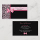 En modern och moderiktig rosa och svart visitkort för boutique för leopardtryckmode med flickaktigt ett band som binds in i en gullig pilbåge. Ett märkes- djurt mönster som annonserar din detaljhandel, servar som en reachef. Den utskrivavna lägenheten avbildar, den inte faktiska pilbågen.