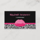 Spridning ord om din chic och stilfulla nya cosmetologysalong och skönhetmottagningsrumen med dessa snyggten och det moderiktiga rosa och svart leopardtrycket danar visitkortar med flickaktigt shock rosaläppar. Personifiera, genom att tillfoga namn av cosmetologisten eller makeupkonstnären.