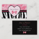 Spridning ord om din enorma nya affär med dessa moderiktiga svartvita zebra tryckvisitkortar med en gullig hjärta och ett flickaktigt rosa band som binds i en pilbåge.