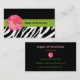 Spridning ord om din enorma nya affär med dessa gulliga och moderiktiga svartvita zebra tryckvisitkortar med en flickaktigt rosa gerberadaisy.