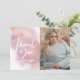 Överför ditt tack på detta personifierade, det moderiktiga fotokortet. Det presenterar vattenfärg skuggar av rosor, korall och mauve och ditt favorit- foto<a href='http://www.freepik.com/free-vector/thank-you-cards-painted-with-watercolors_917409.htm'>Designat vid Freepik</a>. <br/><br/>Kortet är lätt att skräddarsy med ditt uttrycka, stilsorten, stilsortsfärg, formar papper alternativ och primat av sex pappra typer<br/><br/>Inte exakt vad söker efter du? Alla våra produkter kan vara beställnings- designat som möter dina behov på ingen extra laddning<br/><br/>Kontakta enkelt oss på askcottonlamb@gmail.com<br/><br/>Tillgängliga koordinerande produkter: Precis fråga oss!