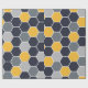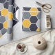 Ett elegantt sexhörningsmönster i blått, grå färg och gult tonar.
