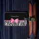 En moderiktig svartvit zebra tryckbagagemärkre med en gullig rosa slågen in något liknande för band pilbåge per gåva. Personifiera, genom att tillfoga ditt namn och resa i stil. Perfekt gåva för för tonåring en flicka flickaktigt!
