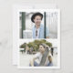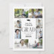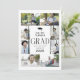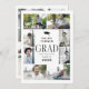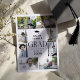 Modern 11 Photo Collage student-annonseringskort. Den här unika designen har elva bilder på graden (9 på framsidan och 2 på baksidan). I mitten finns ett motordriftslock, gradens namn, ställe på studieår och klassår.