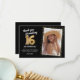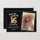 Elegantens 16:e födelsedagsfest tackar du kort med en snyggt svart bakgrund som kan ändras till vilken färg som helst, ett foto av födelsedagsflickan/pojken, guld sparkly glitter, sexton guld hellium-ballonger och en modern tackmall som är lätt att anpassa.