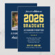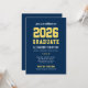 Meddela att din examenklass 2023 har tagit studenten med stil med detta examensmeddelande och partybjudande. Dubbelsidigt kort med en enkel och manlig design med typsnitt inspirerat av sporttröjor, perfekt för din all-stjärna elev och idrottsutövare. Marinblå, gula och vita färger. Utrymme för att inkludera ett seniorfoto av examen finns på baksidan. Alla färger kan anpassas.